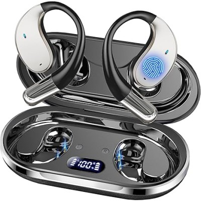 Wireless Earbud Sport, Wireless Headphones Over Ear Dual LED Display, Bluetooth 5.3 in Ear Wireles Earphones Sports with IP7 Waterproof, Bass Over Ear Bud with Earhook for Gym/Workout/Running